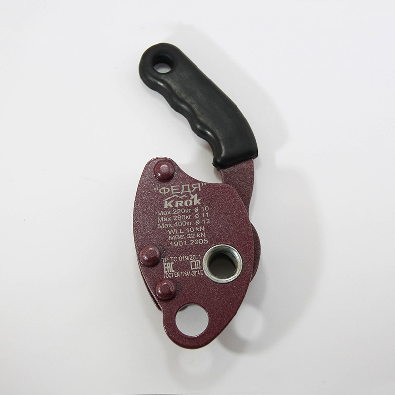 Максимальная расчетная нагрузка (Max) — начало протравливания в зависимости от диаметра используемой верёвки: 220 кг — при Д-10 мм; 280 кг при Д-11 мм; 400 кг при Д-12 мм