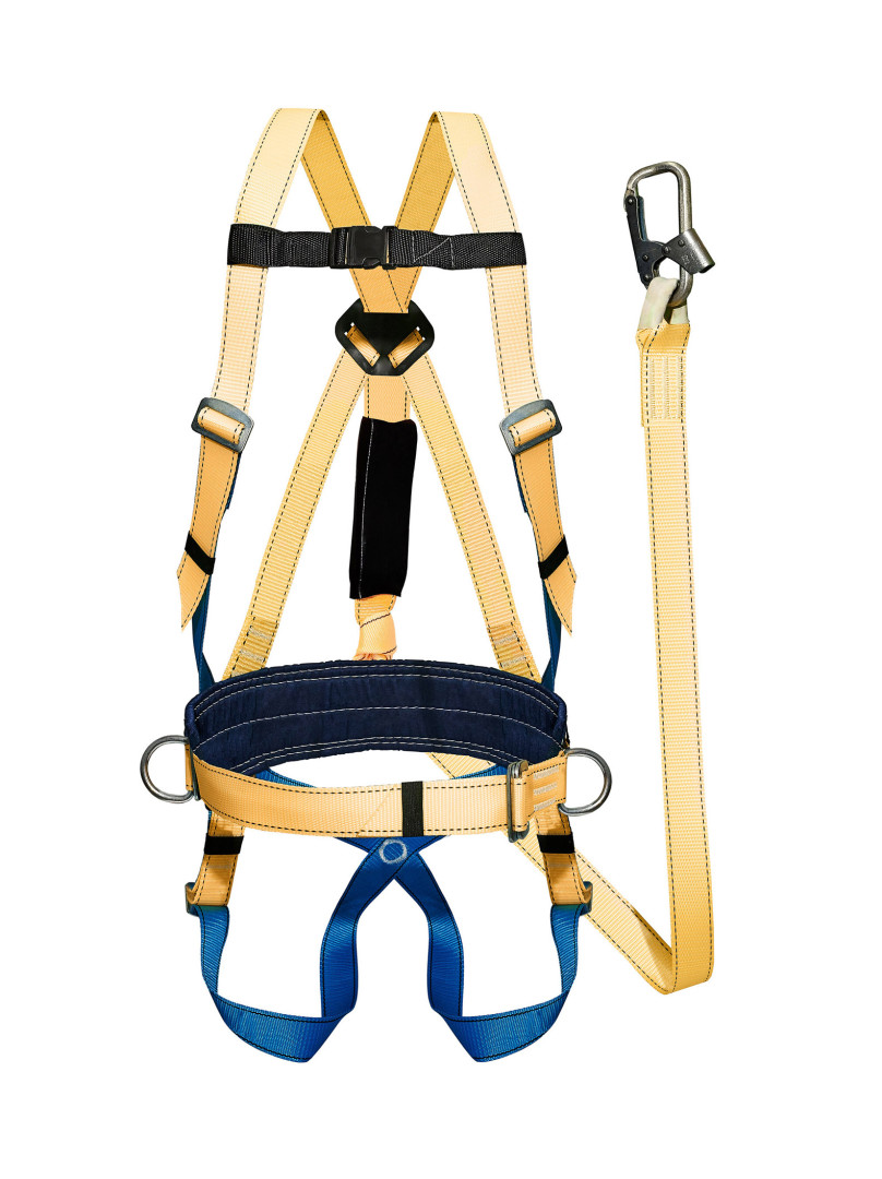 Состоит из ремня с пряжкой, наплечных и набедренных лямок, кушака и трёх D-колец. Два кольца расположены на поясе – для позиционирования и удержания, одно на спине – для удержания и страховки, экстренной эвакуации и спасательных работ.