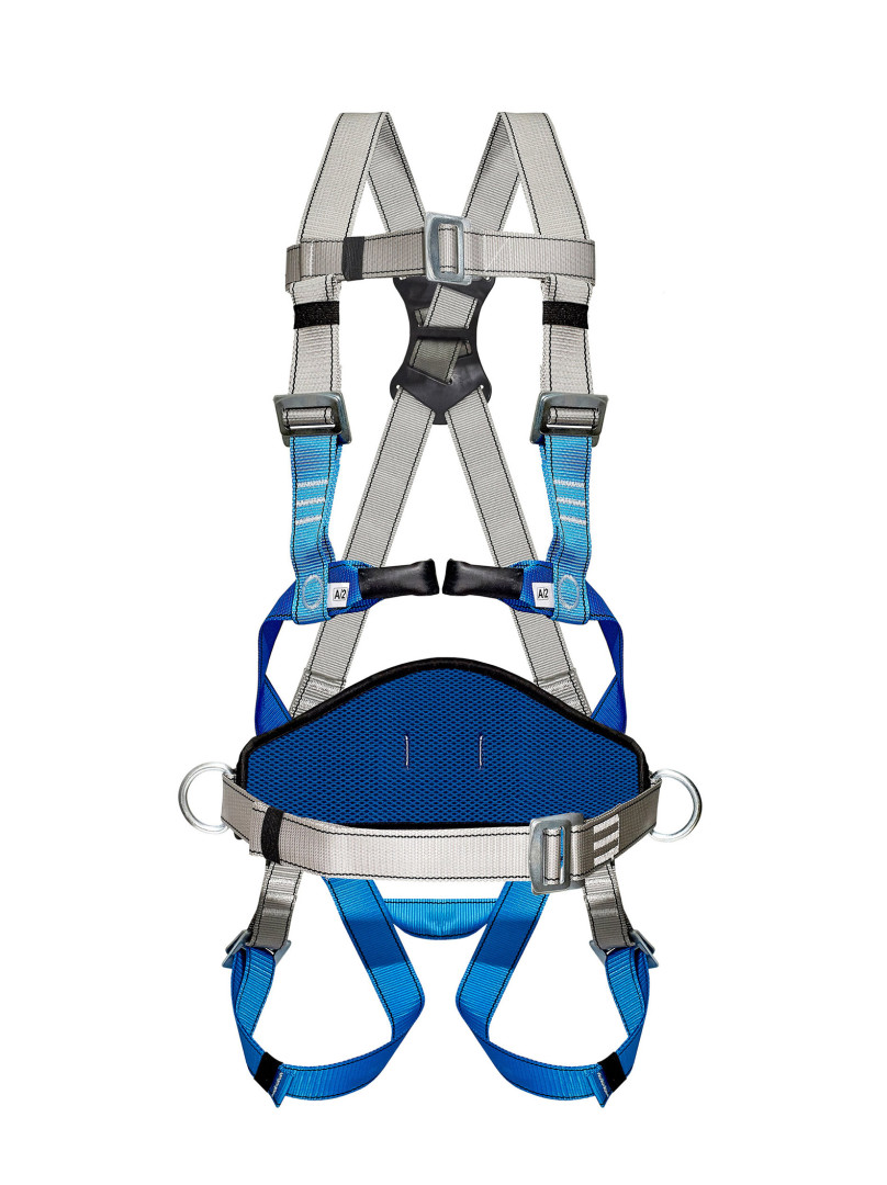Состоит из ремня с пряжкой, наплечных и набедренных лямок, эргономичного кушака, имеет 4 точки крепления стропа. Два D-кольца расположены на поясе – для позиционирования и удержания, одно на спине – для удержания и страховки, и петли на груди – для спасательных работ, страховки, поднятия и спуска рабочих в замкнутых пространствах, экстренной эвакуации.