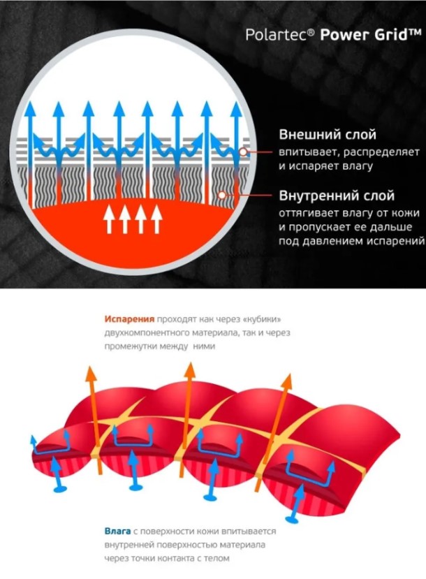 Состав: внешний слой: полиэстер 93 %, спандекс 7 %, внутренний слой: полиэстер 100 %.